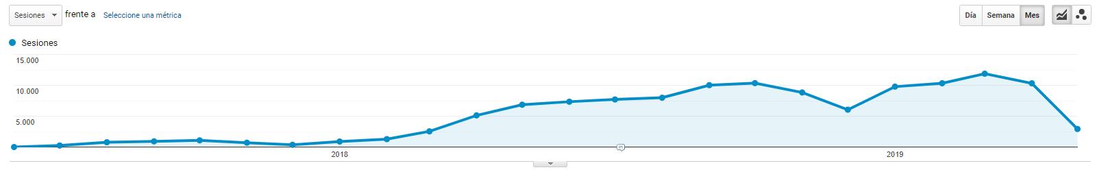 Esta es la evolución del tráfico orgánico desde que comencé el proyecto en junio de 2017 (el bajón es por estacionalidad)